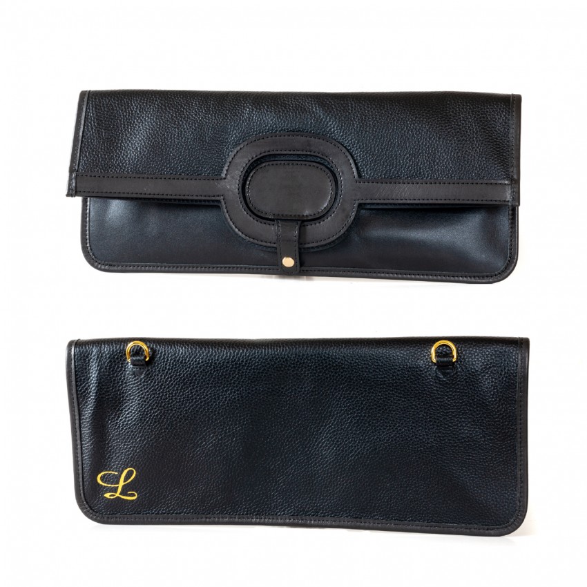 ・H14 x W37 x D3 cm|折疊後高度14 cm.可另外加費選配背帶・可自選皮革配色|請參考皮革選色・牛津布內裡|內部一側為拉鏈袋,一側為插袋・金色調五金配件・附防塵袋供日常收藏字體選擇表